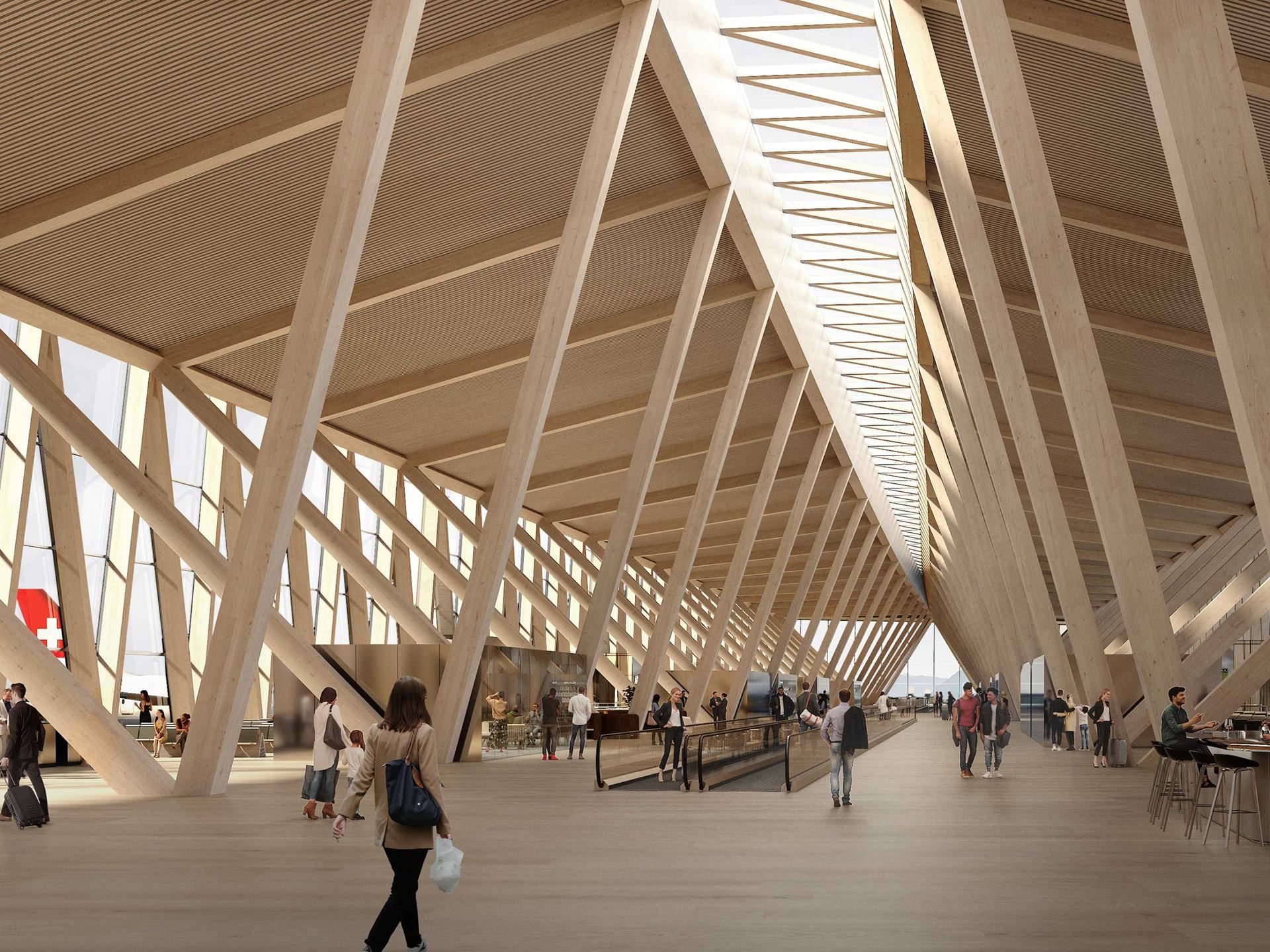 In Zusammenarbeit mit BIG Architekten wird ein neues Dock für Schengen- und Non-Schengen-Passagiere realisiert, das über den innovativen Verbindungsbau, die Wurzel, an die bestehenden Infrastruktur anknüpft. Die Planungen für den herausragenden Siegerentwurf ‚Raumfachwerk‘ sind bereits in vollem Gange und der Baustart des Projekts mit seiner einzigartigen nachhaltigen Architektur ist für 2030 geplant.